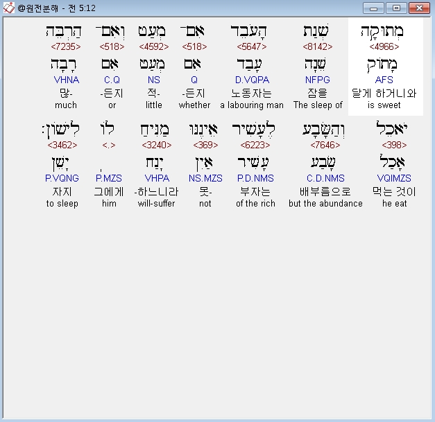 | 히브리어 전도서 6장 전체 원어 원문 성경 공부 주석 강해 설교 해설 해석 (0) | 2020.10.15 |