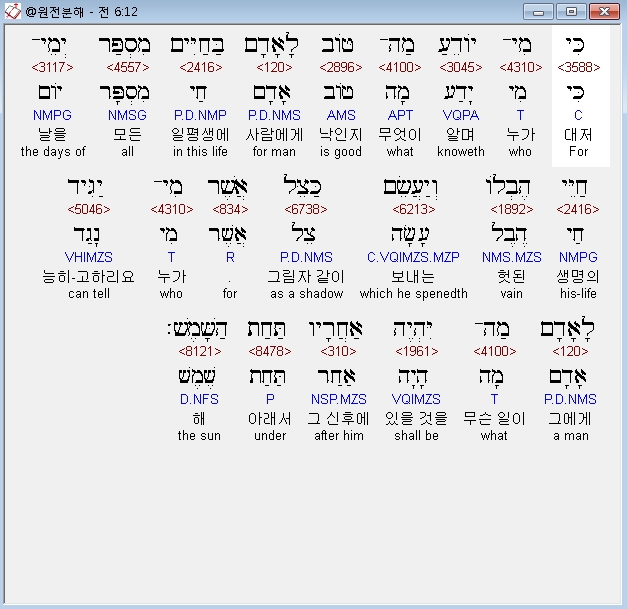 | 히브리어 전도서 3장 전체 원어 원문 성경 공부 주석 강해 설교 해설 해석 (0) | 2020.10.15 |