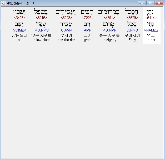 히브리어구약BHS,6 נִתַּן הַסֶּכֶל בַּמְּרֹומִים רַבִּים וַעֲשִׁירִים בַּשֵּׁפֶל יֵשֵׁבוּ׃