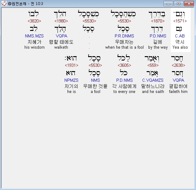 헬라어구약Septuagint,3 και γε εν οδω οταν αφρων πορευηται καρδια αυτου υστερησει και α λογιειται παντα αφροσυνη εστιν