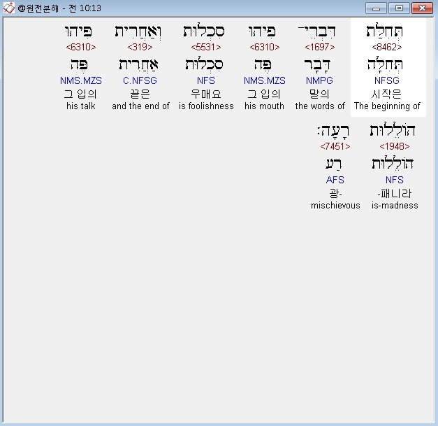| 히브리어 전도서 12장 전체 원어 원문 성경 공부 주석 강해 설교 해설 해석 (0) | 2020.10.16 |
