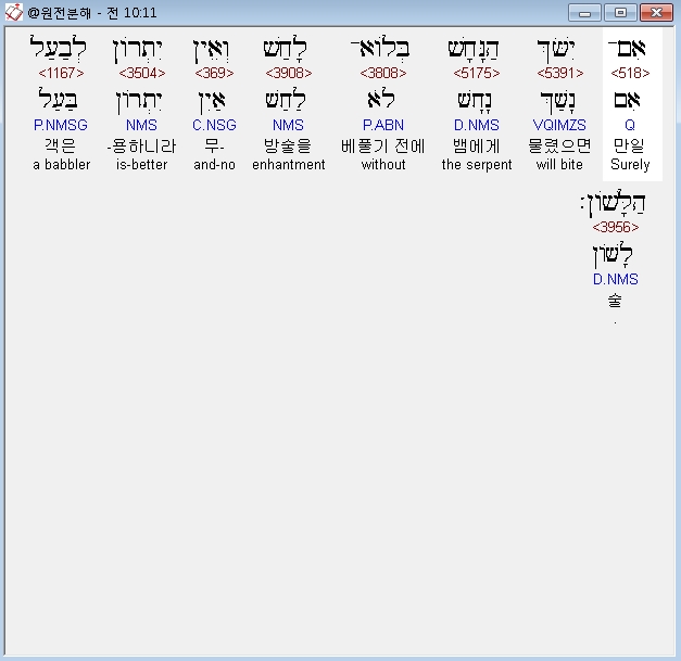 | 히브리어 전도서 11장 전체 원어 원문 성경 공부 주석 강해 설교 해설 해석 (0) | 2020.10.16 |