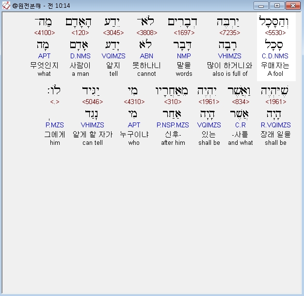 | 히브리어 전도서 9장 전체 원어 원문 성경 공부 주석 강해 설교 해설 해석 (0) | 2020.10.15 |