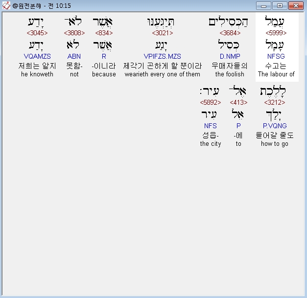 히브리어구약BHS,15 עֲמַל הַכְּסִילִים תְּיַגְּעֶנּוּ אֲשֶׁר לֹא־יָדַע לָלֶכֶת אֶל־עִיר׃