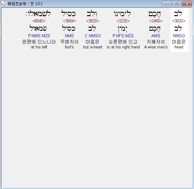 히브리어구약BHS,2 לֵב חָכָם לִימִינֹו וְלֵב כְּסִיל לִשְׂמֹאלֹו׃