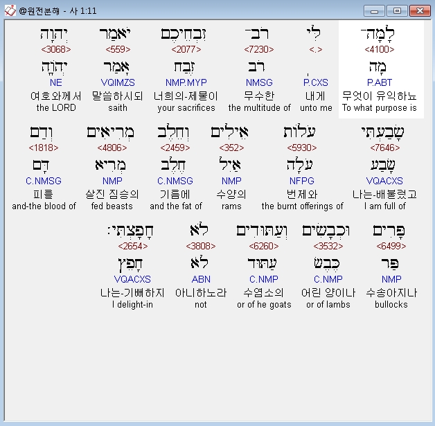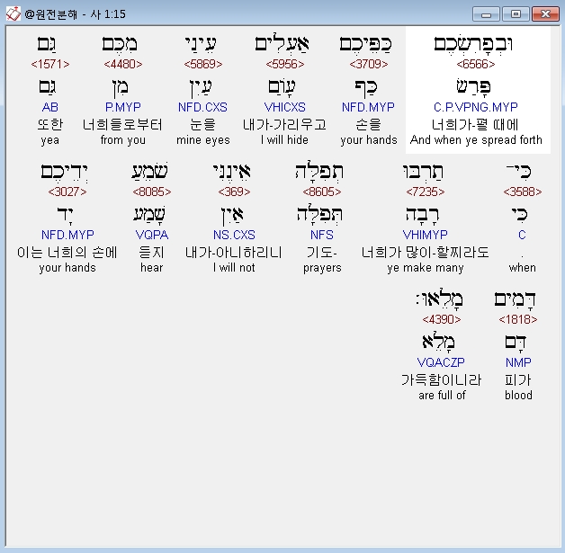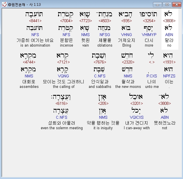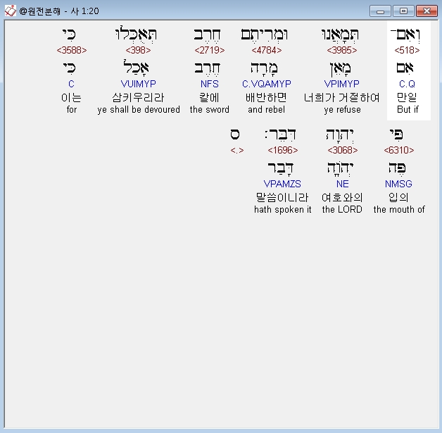 | 히브리어 이사야 3장 전체 원어 원문 성경 공부 주석 강해 설교 해설 해석 (0) | 2020.10.16 |