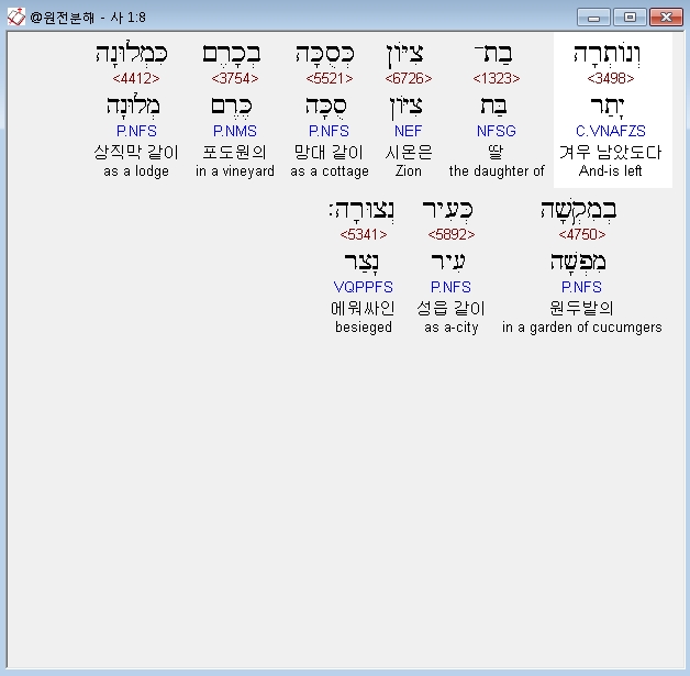 | 히브리어 아가 8장 전체 원어 원문 성경 공부 주석 강해 설교 해설 해석 (0) | 2020.10.16 |
