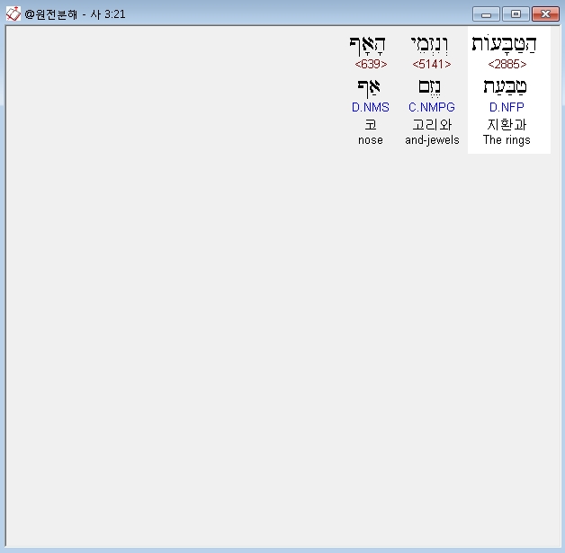 히브리어구약BHS,21 הַטַּבָּעֹות וְנִזְמֵי הָאָף׃