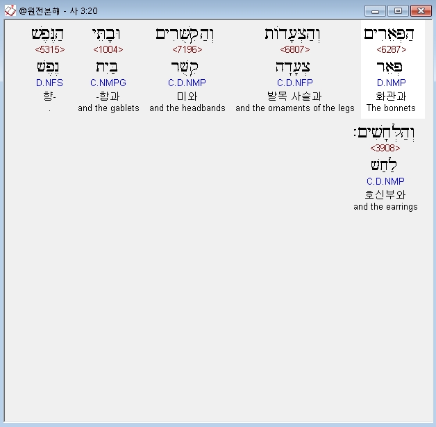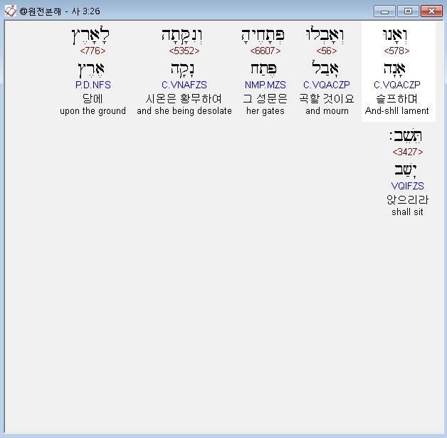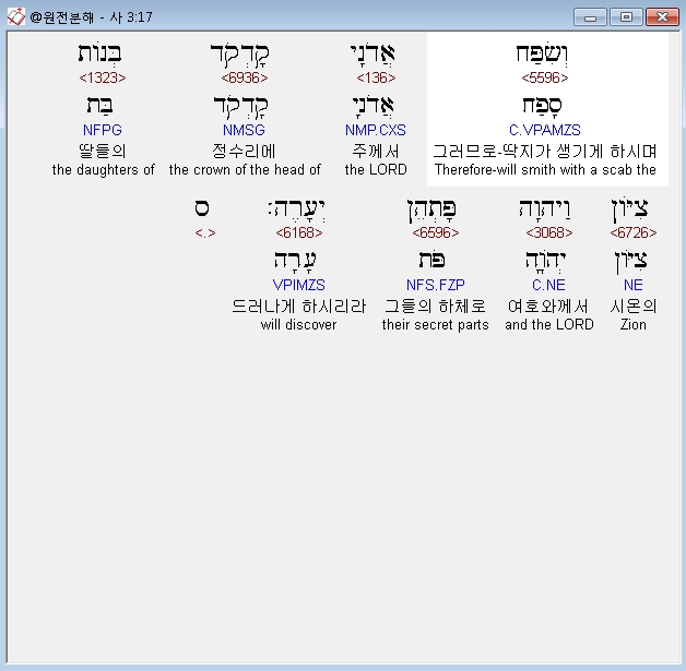 | 히브리어 이사야 4장 전체 원어 원문 성경 공부 주석 강해 설교 해설 해석 (0) | 2020.10.16 |
