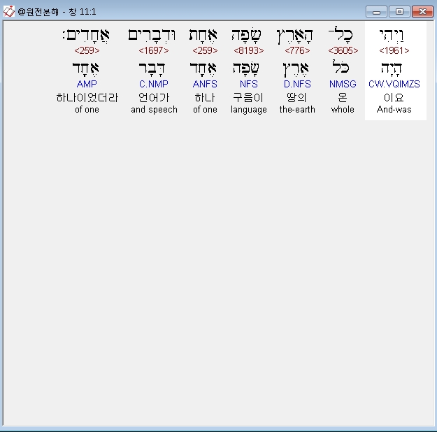 히브리어구약BHS,1 וַיְהִי כָל־הָאָרֶץ שָׂפָה אֶחָת וּדְבָרִים אֲחָדִים׃