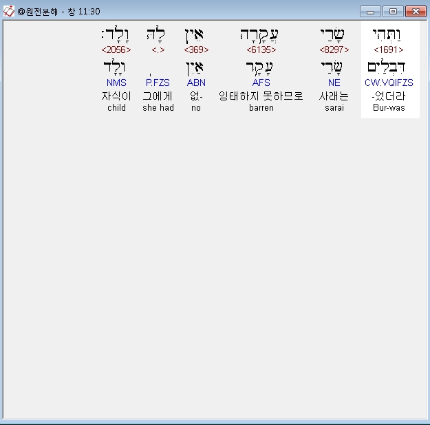 히브리어구약BHS,30 וַתְּהִי שָׂרַי עֲקָרָה אֵין לָהּ וָלָד׃