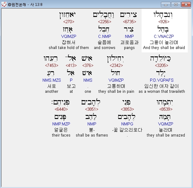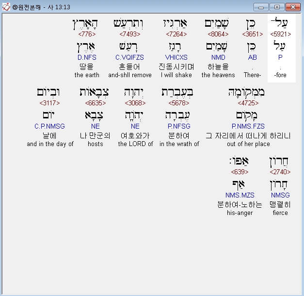 | 히브리어 이사야 14장 전체 원어 원문 성경 공부 주석 강해 설교 해설 해석 (0) | 2020.10.16 |