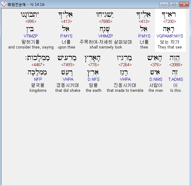 | 히브리어 이사야 16장 전체 원어 원문 성경 공부 주석 강해 설교 해설 해석 (0) | 2020.10.16 |