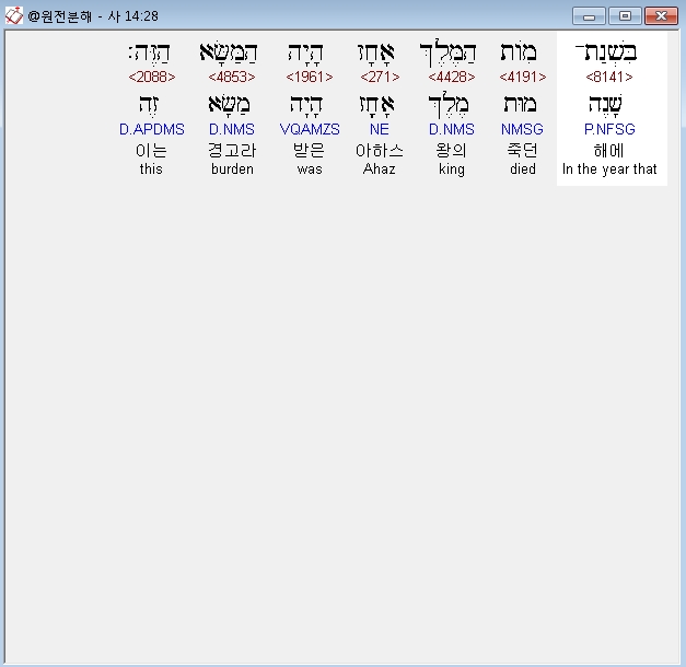히브리어구약BHS,28 בִּשְׁנַת־מֹות הַמֶּלֶךְ אָחָז הָיָה הַמַּשָּׂא הַזֶּה׃