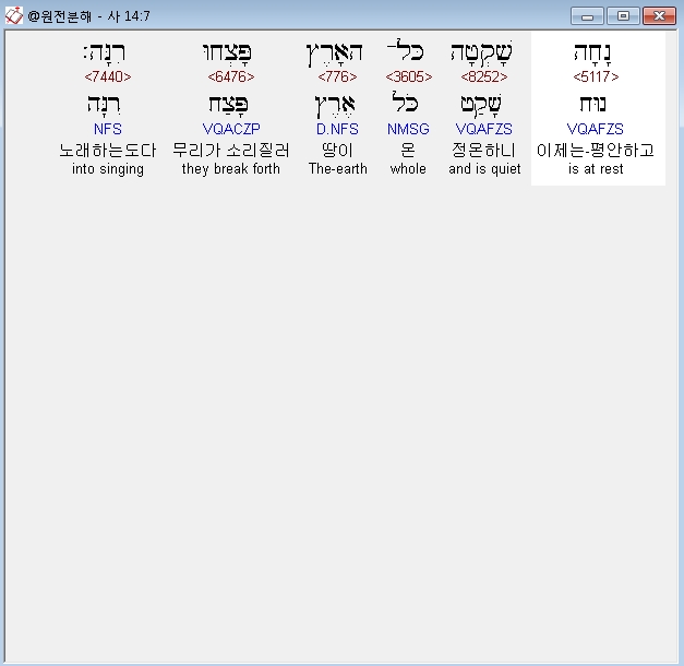 히브리어구약BHS,7 נָחָה שָׁקְטָה כָּל־הָאָרֶץ פָּצְחוּ רִנָּה׃