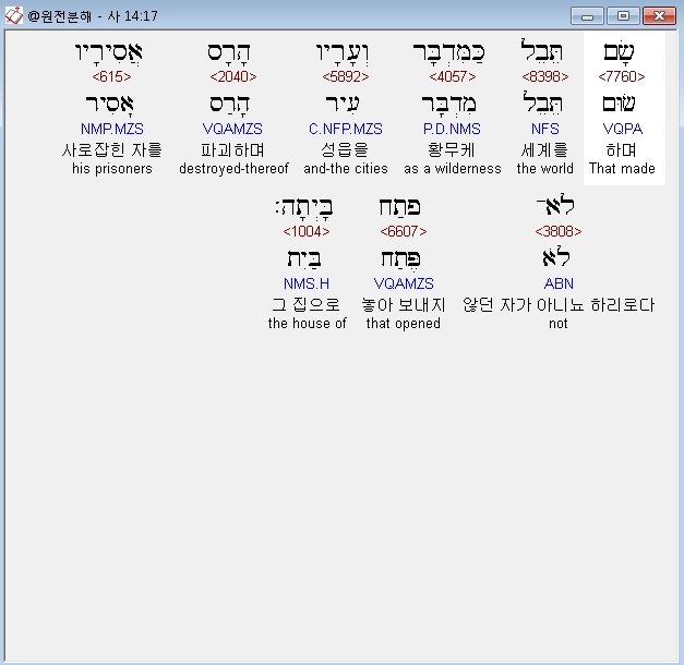 | 히브리어 이사야 13장 전체 원어 원문 성경 공부 주석 강해 설교 해설 해석 (0) | 2020.10.16 |