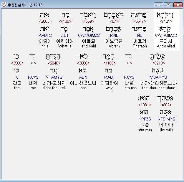 헬라어구약Septuagint,18 καλεσας δε φαραω τον αβραμ ειπεν τι τουτο εποιησας μοι οτι ουκ απηγγειλας μοι οτι γυνη σου εστιν