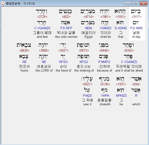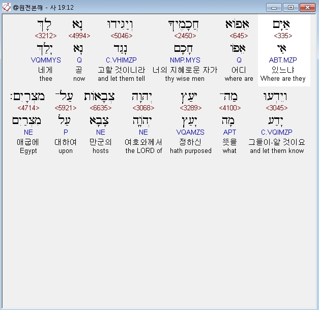 | 히브리어 이사야 20장 전체 원어 원문 성경 공부 주석 강해 설교 해설 해석 (0) | 2020.10.16 |