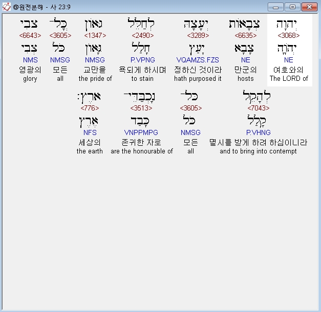 | 히브리어 이사야 24장 전체 원어 원문 성경 공부 주석 강해 설교 해설 해석 (0) | 2020.10.16 |