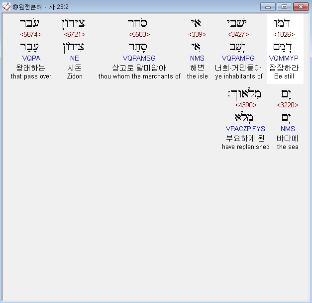 히브리어구약BHS,2 דֹּמּוּ יֹשְׁבֵי אִי סֹחֵר צִידֹון עֹבֵר יָם מִלְאוּךְ׃