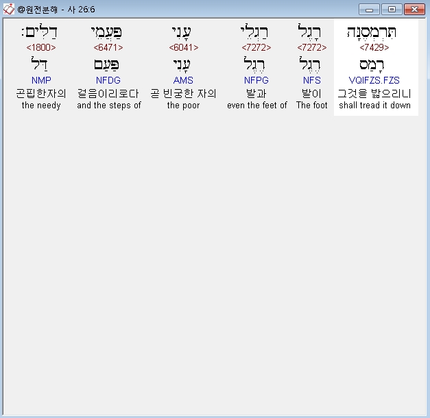 히브리어구약BHS,6 תִּרְמְסֶנָּה רָגֶל רַגְלֵי עָנִי פַּעֲמֵי דַלִּים׃
