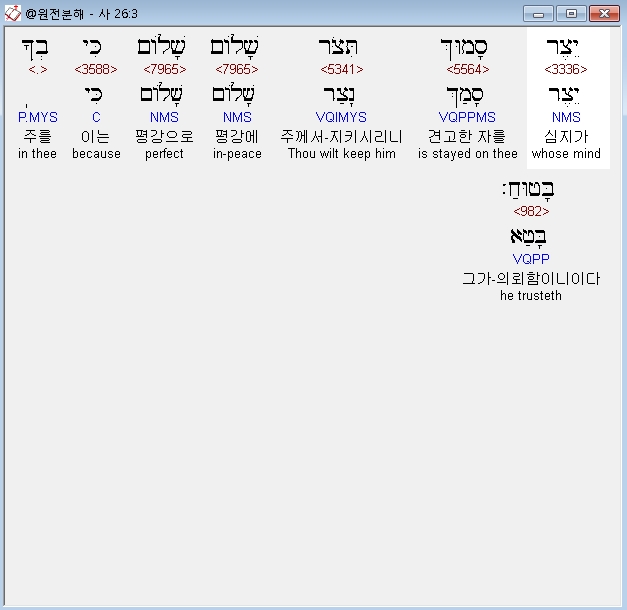 히브리어구약BHS,3 יֵצֶר סָמוּךְ תִּצֹּר שָׁלֹום שָׁלֹום כִּי בְךָ בָּטוּחַ׃