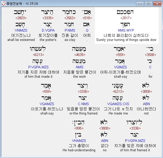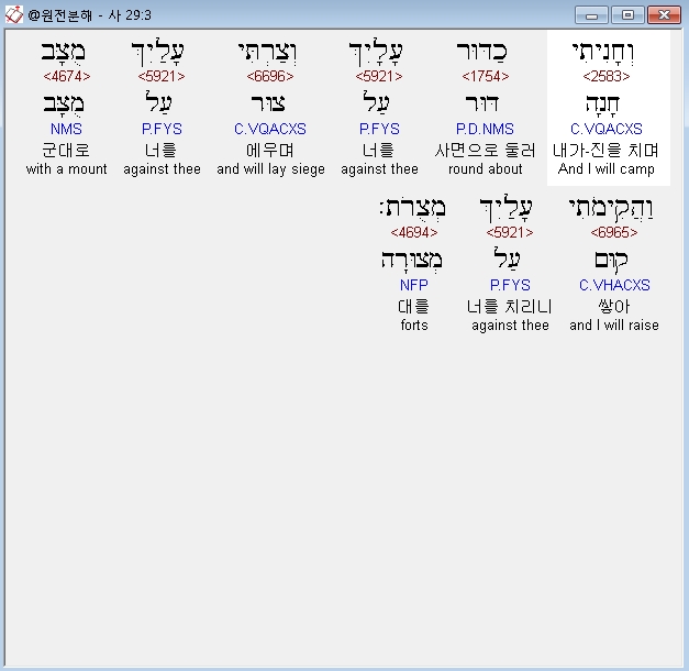 | 히브리어 이사야 31장 전체 원어 원문 성경 공부 주석 강해 설교 해설 해석 (0) | 2020.10.18 |