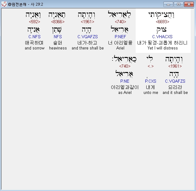 히브리어구약BHS,2 וַהֲצִיקֹותִי לַאֲרִיאֵל וְהָיְתָה תַאֲנִיָּה וַאֲנִיָּה וְהָיְתָה לִּי כַּאֲרִיאֵל׃