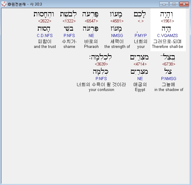| 히브리어 이사야 31장 전체 원어 원문 성경 공부 주석 강해 설교 해설 해석 (0) | 2020.10.18 |