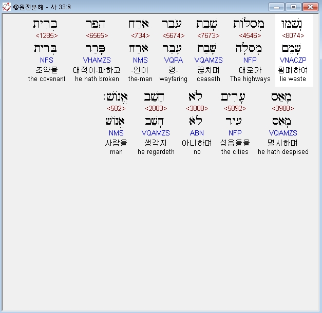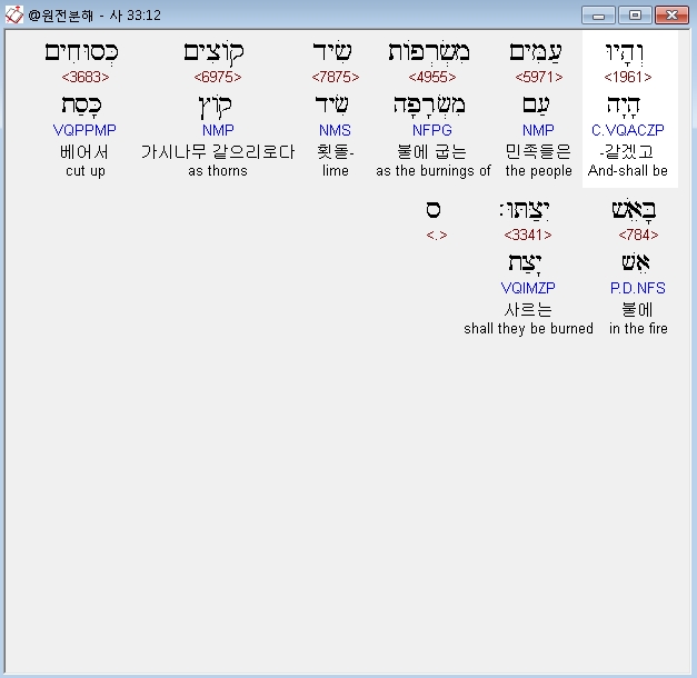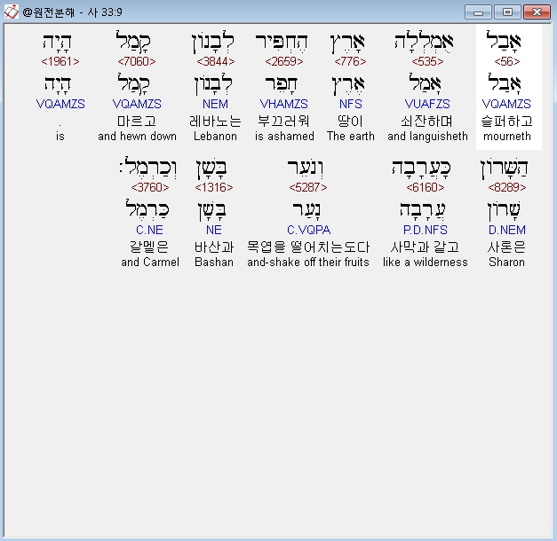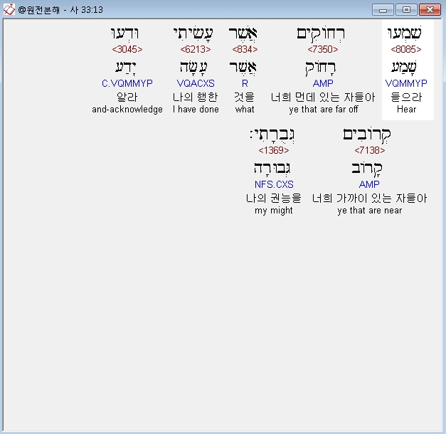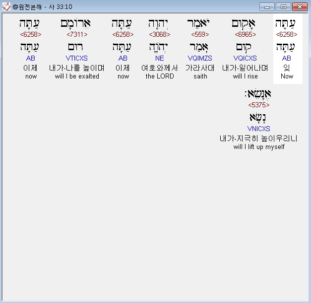 | 히브리어 이사야 35장 전체 원어 원문 성경 공부 주석 강해 설교 해설 해석 (0) | 2020.10.18 |