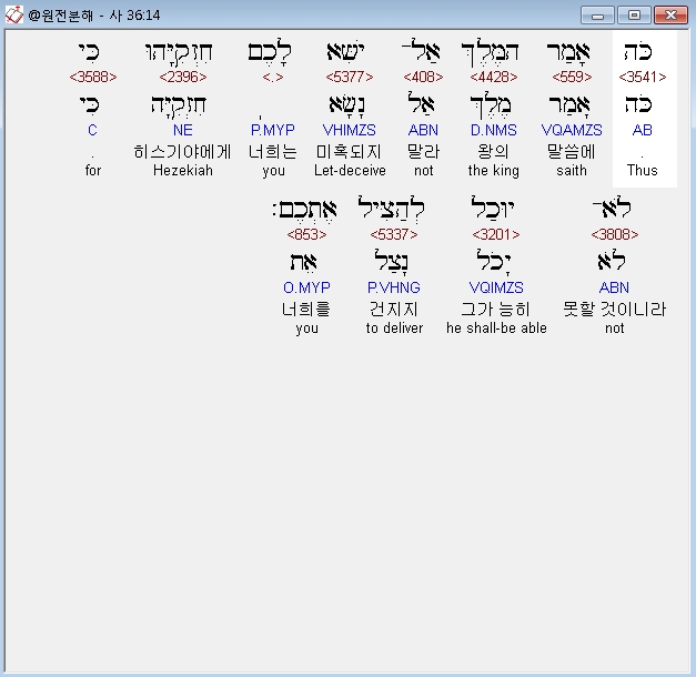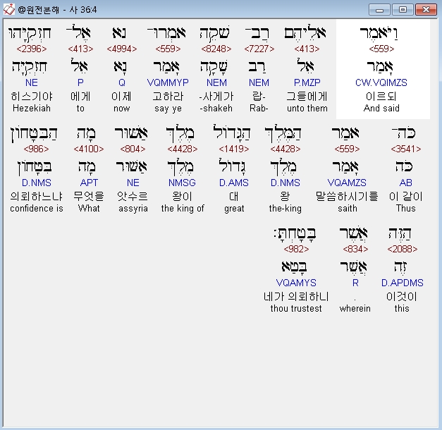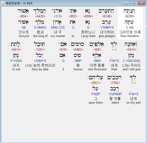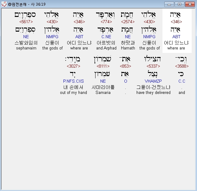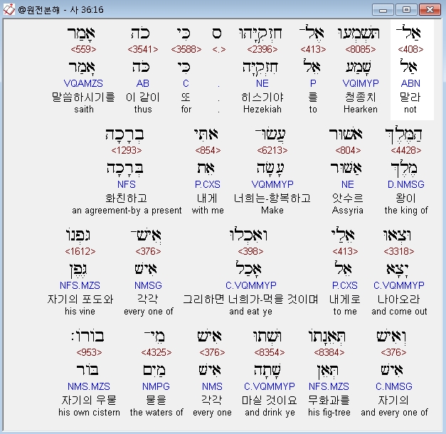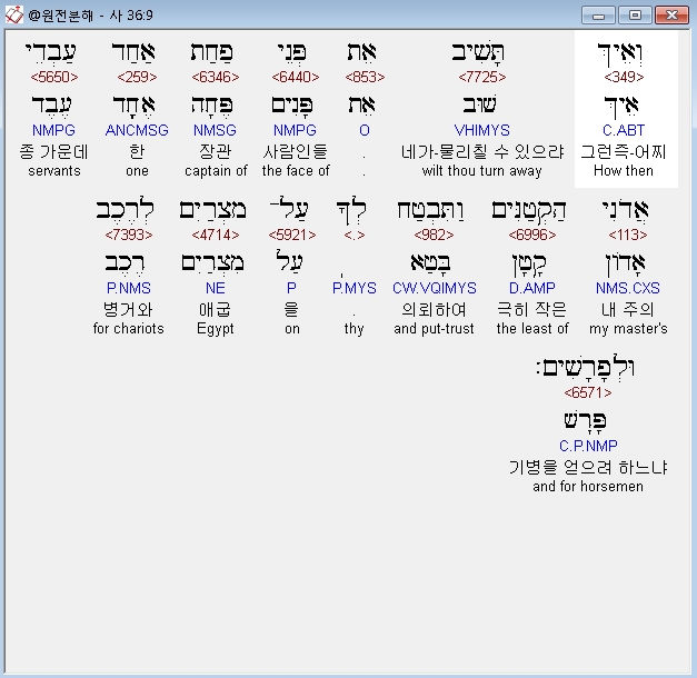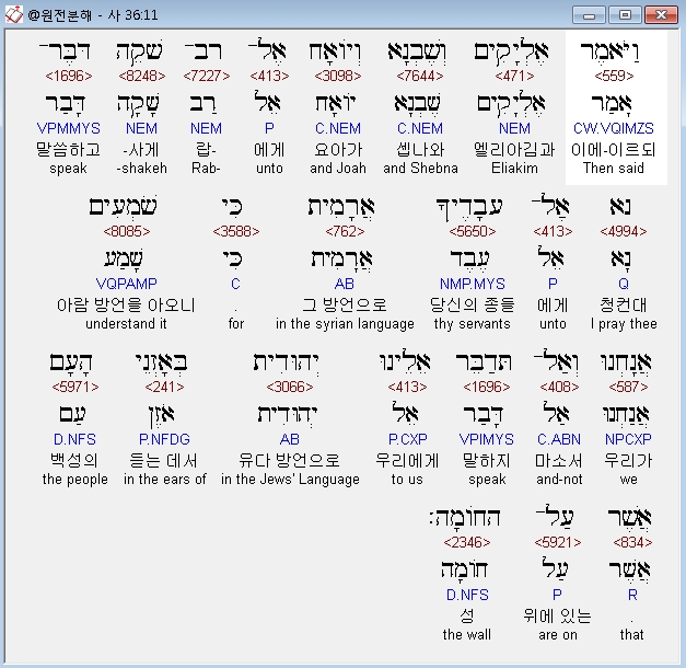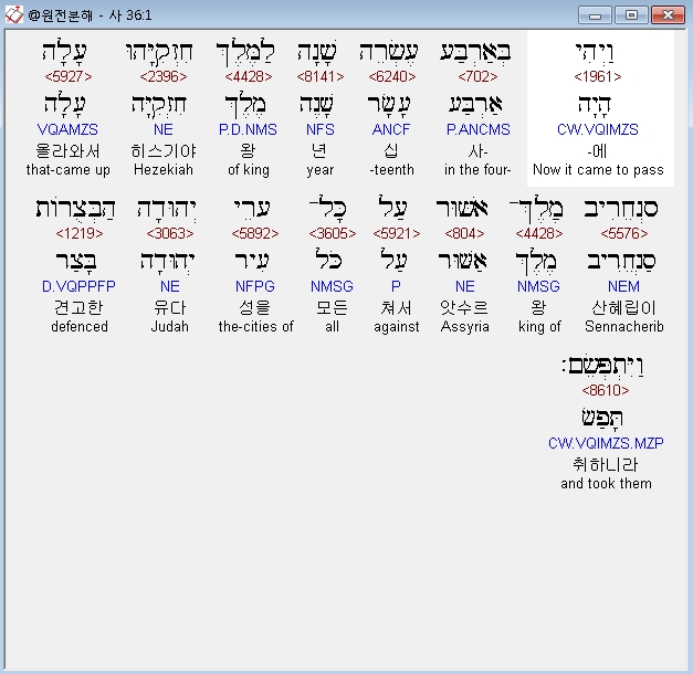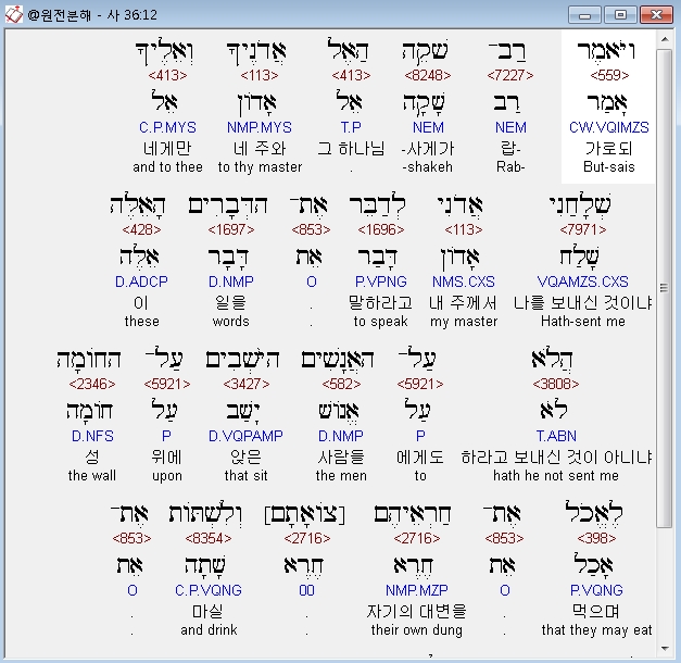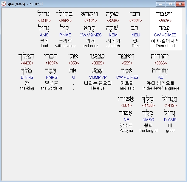 | 히브리어 이사야 37장 전체 원어 원문 성경 공부 주석 강해 설교 해설 해석 (0) | 2020.10.18 |