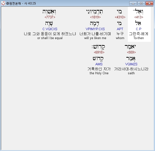 히브리어구약BHS,25 וְאֶל־מִי תְדַמְּיוּנִי וְאֶשְׁוֶה יֹאמַר קָדֹושׁ׃