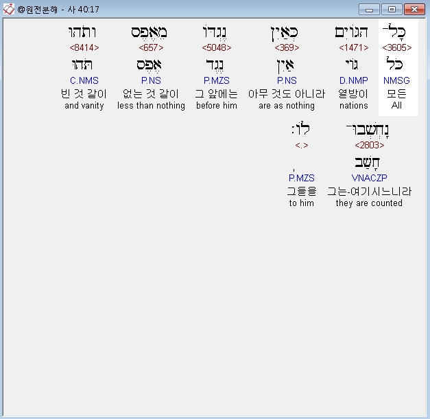 | 히브리어 이사야 42장 전체 원어 원문 성경 공부 주석 강해 설교 해설 해석 (0) | 2020.10.18 |