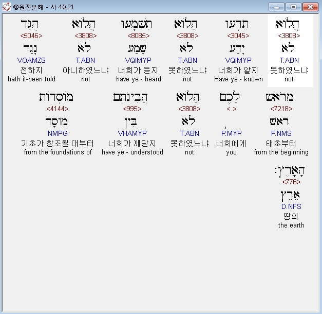 | 히브리어 이사야 41장 전체 원어 원문 성경 공부 주석 강해 설교 해설 해석 (0) | 2020.10.18 |