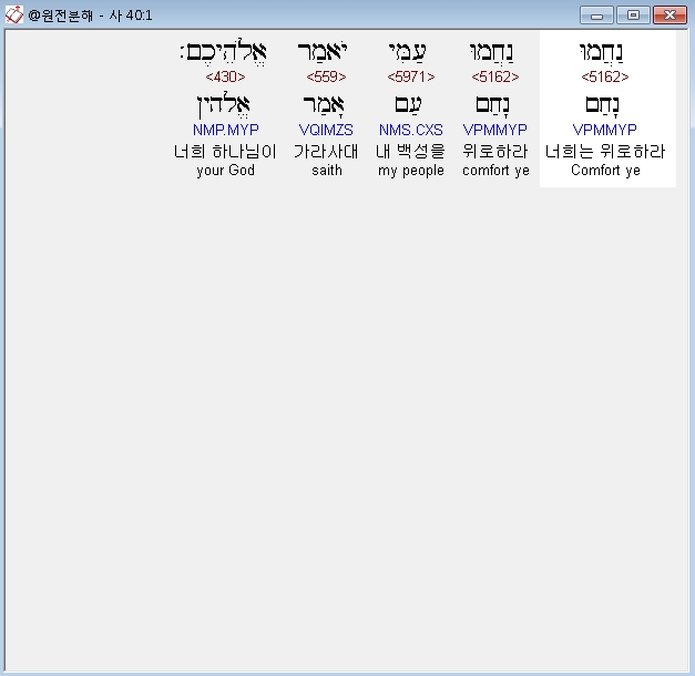 히브리어구약BHS,1 נַחֲמוּ נַחֲמוּ עַמִּי יֹאמַר אֱלֹהֵיכֶם׃