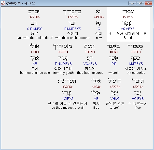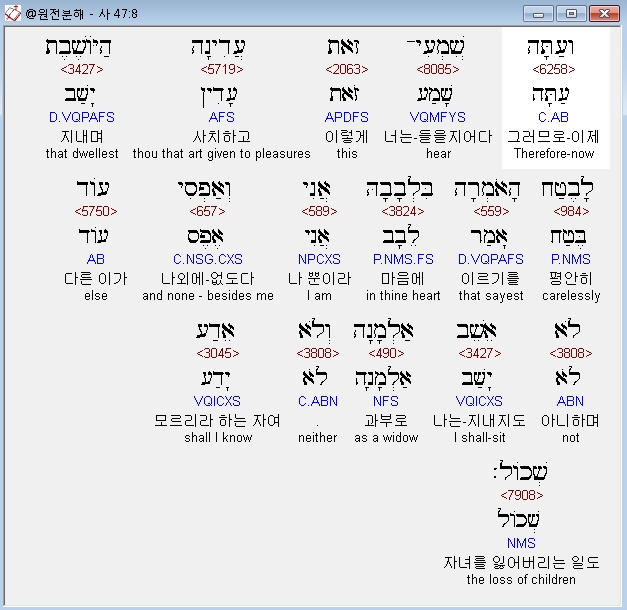 | 히브리어 이사야 46장 전체 원어 원문 성경 공부 주석 강해 설교 해설 해석 (0) | 2020.10.18 |