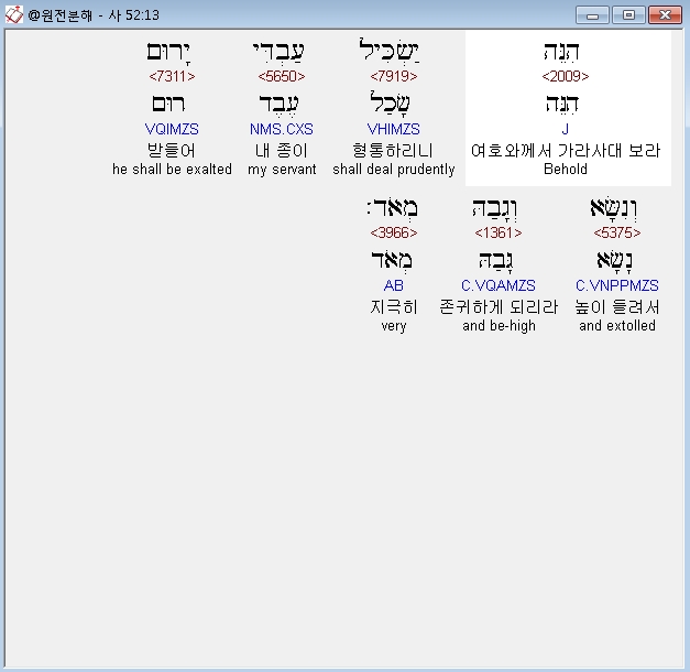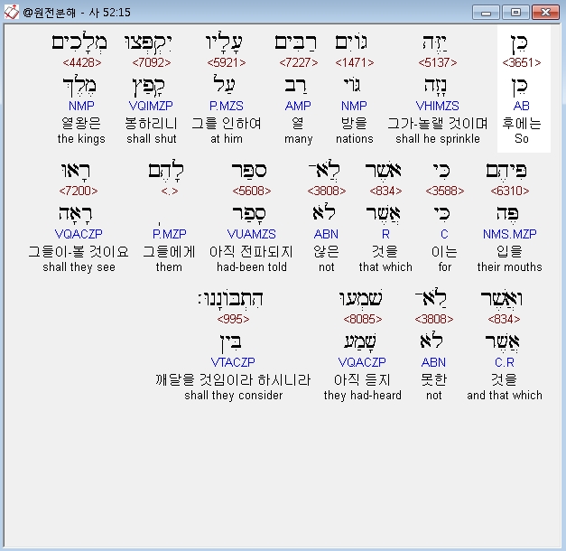 | 히브리어 이사야 53장 전체 원어 원문 성경 공부 주석 강해 설교 해설 해석 (0) | 2020.10.18 |