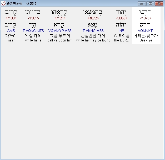 히브리어구약BHS,6 דִּרְשׁוּ יְהוָה בְּהִמָּצְאֹו קְרָאֻהוּ בִּהְיֹותֹו קָרֹוב׃