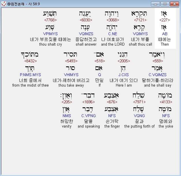 | 히브리어 이사야 59장 전체 원어 원문 성경 공부 주석 강해 설교 해설 해석 (0) | 2020.10.18 |