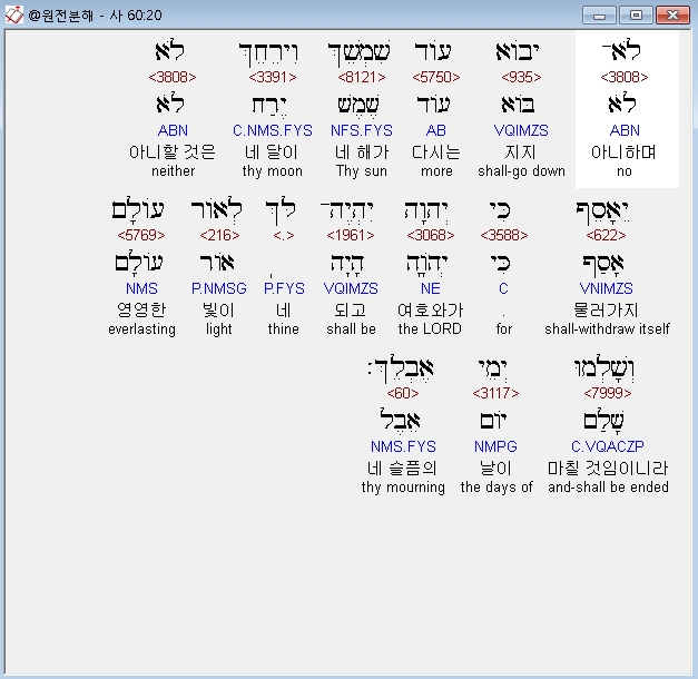 | 히브리어 이사야 59장 전체 원어 원문 성경 공부 주석 강해 설교 해설 해석 (0) | 2020.10.18 |