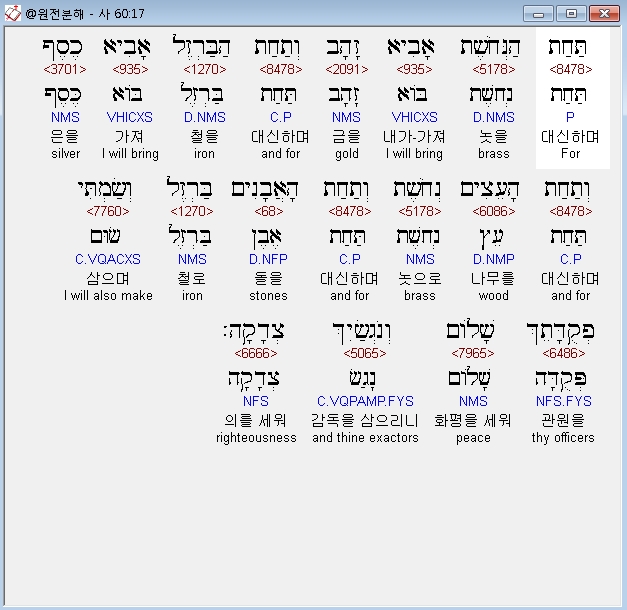 | 히브리어 이사야 61장 전체 원어 원문 성경 공부 주석 강해 설교 해설 해석 (0) | 2020.10.18 |
