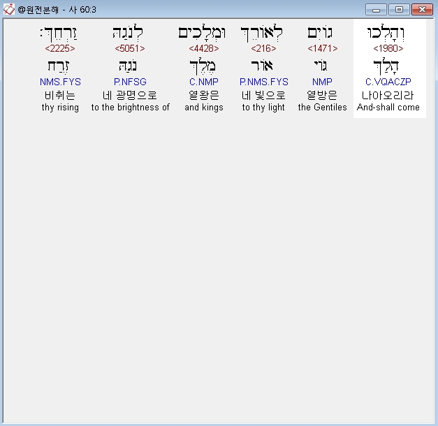 히브리어구약BHS,3 וְהָלְכוּ גֹויִם לְאֹורֵךְ וּמְלָכִים לְנֹגַהּ זַרְחֵךְ׃