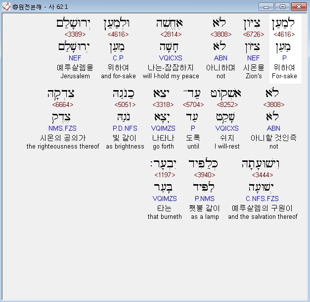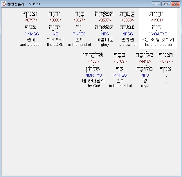 | 히브리어 이사야 61장 전체 원어 원문 성경 공부 주석 강해 설교 해설 해석 (0) | 2020.10.18 |