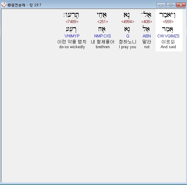 영어NASB,7 and said, "Please, my brothers, do not act wickedly.