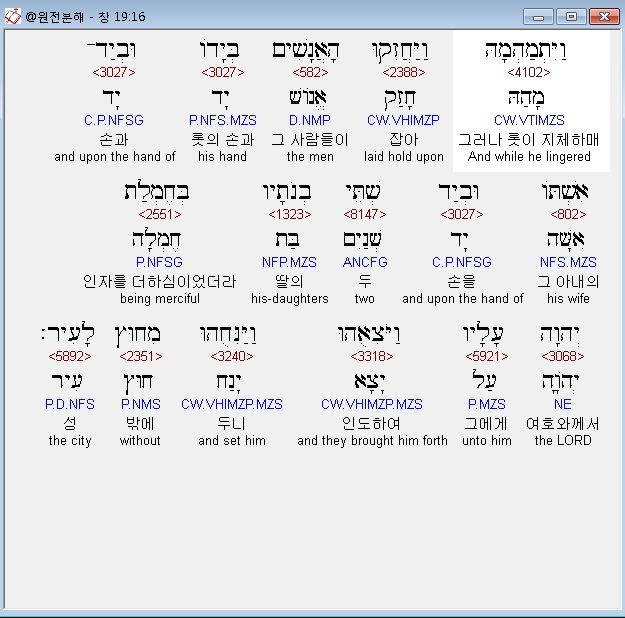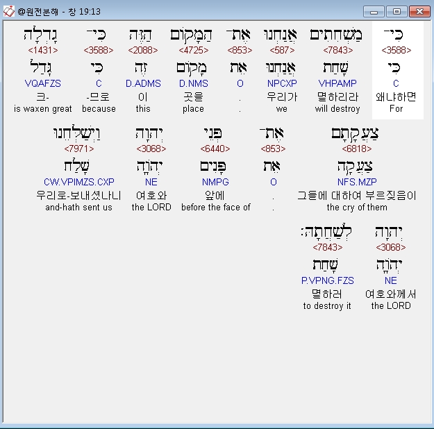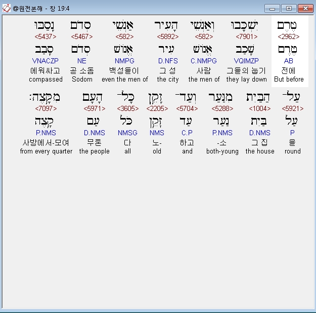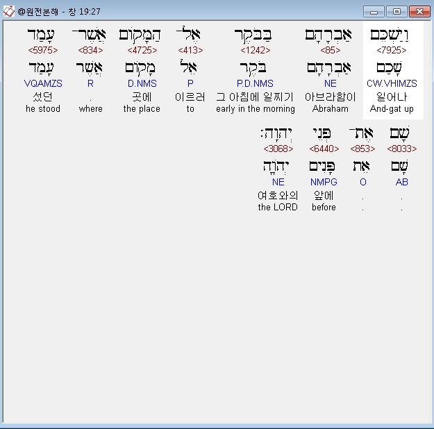 | 히브리어 창세기 18장 전체 원어 원문 성경 공부 주석 강해 설교 해설 해석 (0) | 2020.09.25 |