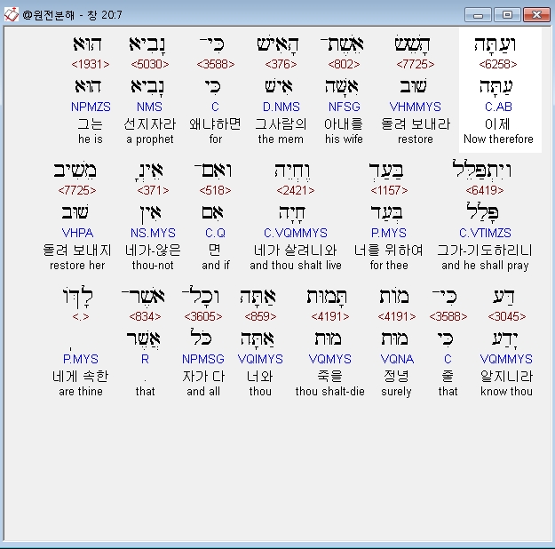 | 히브리어 창세기 18장 전체 원어 원문 성경 공부 주석 강해 설교 해설 해석 (0) | 2020.09.25 |